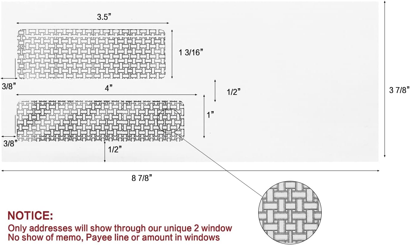 - DOUBLE WINDOW DESIGN: Only sender and return address will show on your QuickBooks invoices and monthly bills through our unique 2 window . No show of memo, Payee line or amount in windows. Suitable for QuickBooks Invoices and business billing statements.