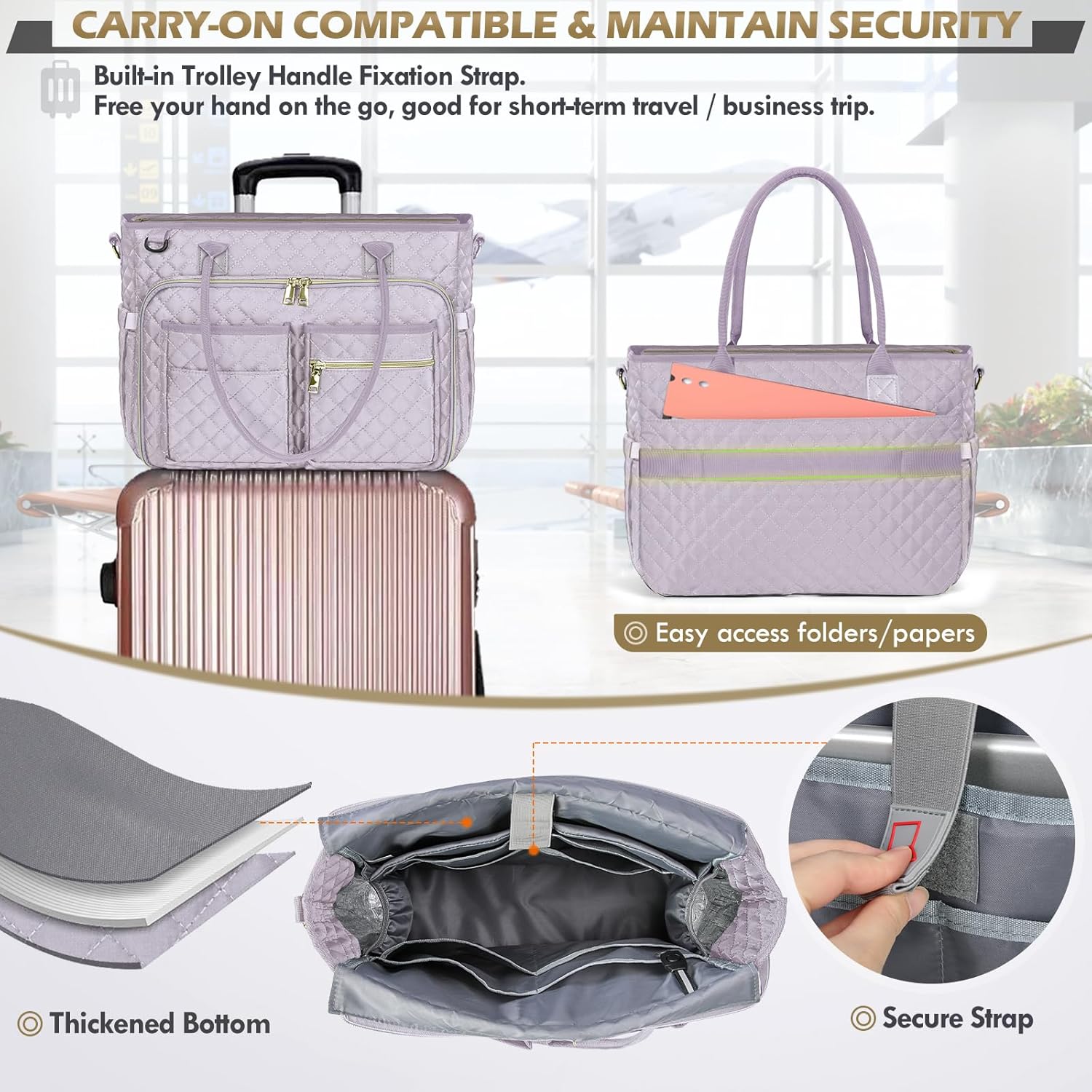 - CONVENIENCE DESIGN FOR TRAVELERS- The luggage strap in the back allows this women tote bag to slide over the luggage tube, to free your hand on the go. The standard size of this women laptop bag makes this a good airplane travel bag, it is able to fit in the overhead bin and under seat space. The laptop bag for women also provides multiple ways of carrying, it can serve as a shoulder bag, office bag, laptop carrying bag, or laptop cross-body bag
